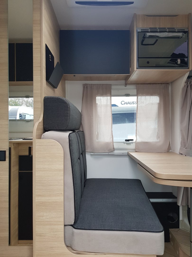 Here we have the 2025 Chausson S695 Sportline built on the Ford transit chassis with the 165bhp engine and the new automatic gearbox. The layout is a french bed at the rear on the nearside and storage on the offside, coming forward you have the kitchen opposite the toilet. Up front you have the half dinette which incorpararates the two additional travelling seats and a table for eating at. At just 6.59m long and 2.10m wide it makes a great van for touring. Specification: Double Din Radio, Cab air Con, Cruise control, Swivel seats, Awning, Solar Panel, Reversing camera, Fridge, Freezer, Hob, Grill, Cassette toilet, Shower, Ambient lighting, Mains electric, Battery charger, Second battery, Diesel heating, Electric water heating, Blinds, Flyscreens, Large rooflight Panoramic rooflight, Alloy wheels
